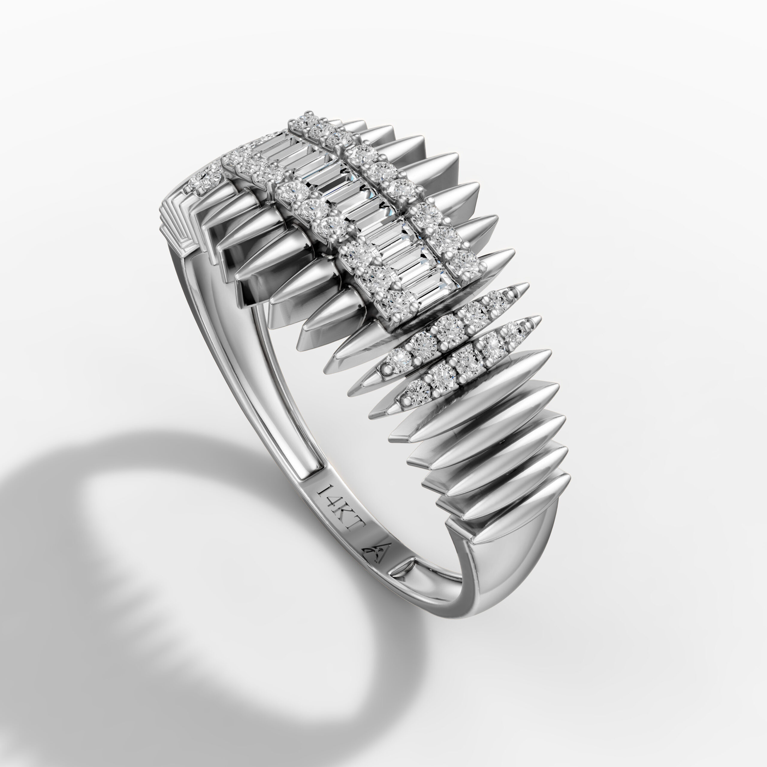 14K White Gold and Natural Baguette Diamond Geometric Statement Ring