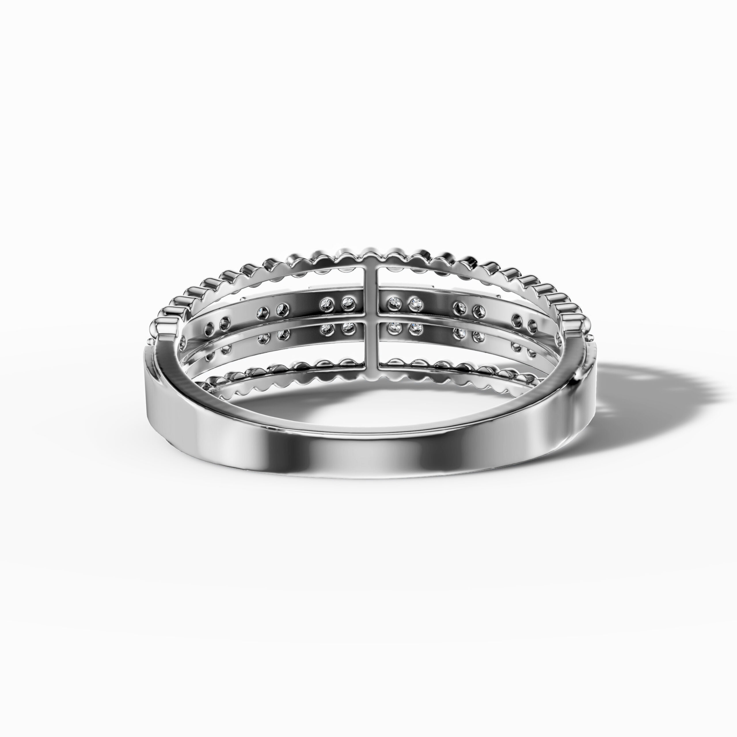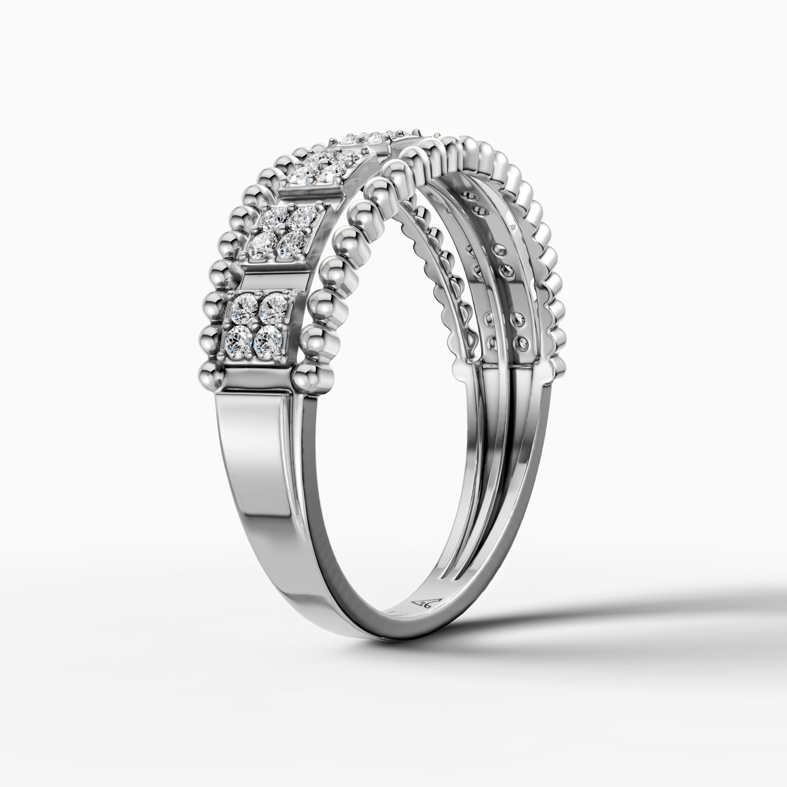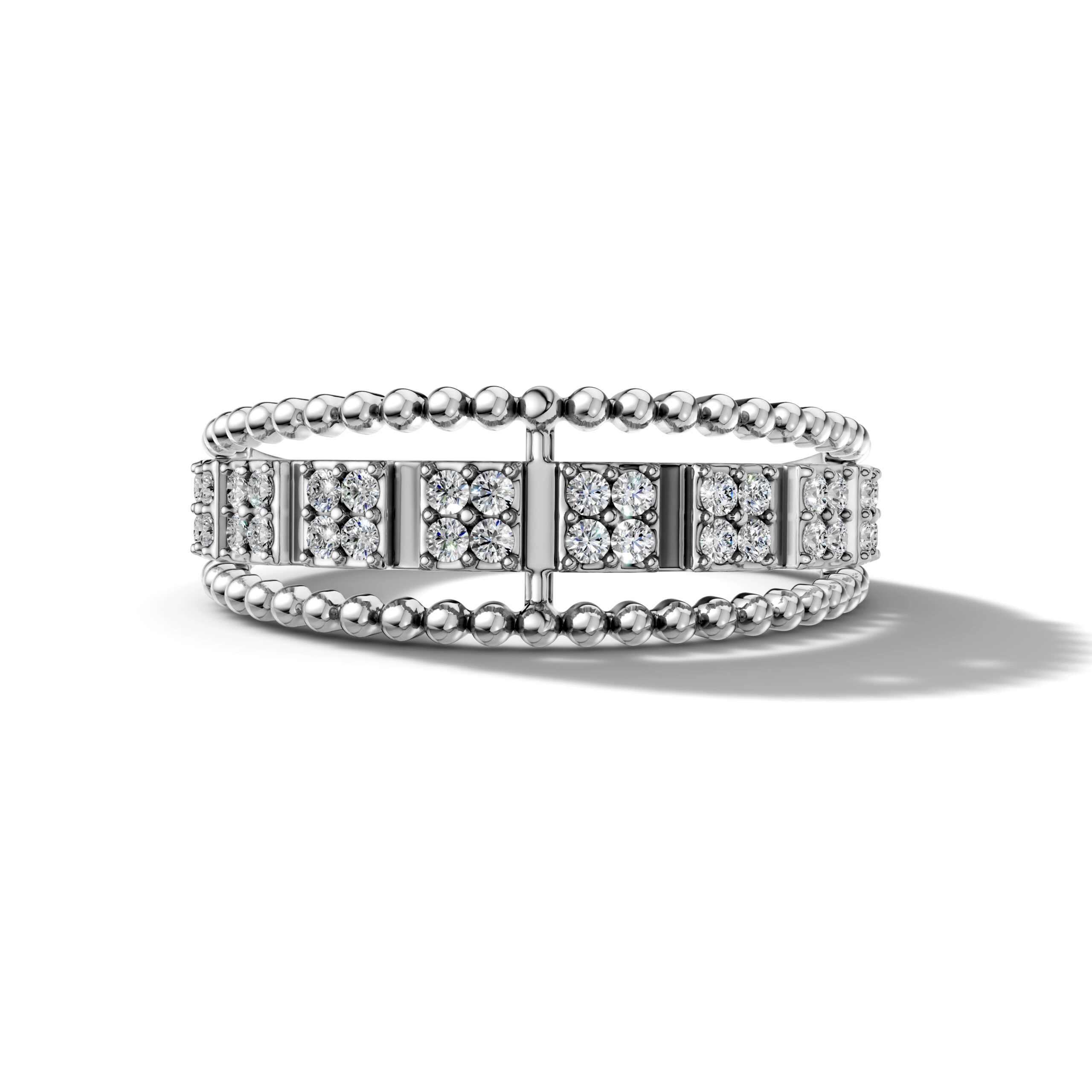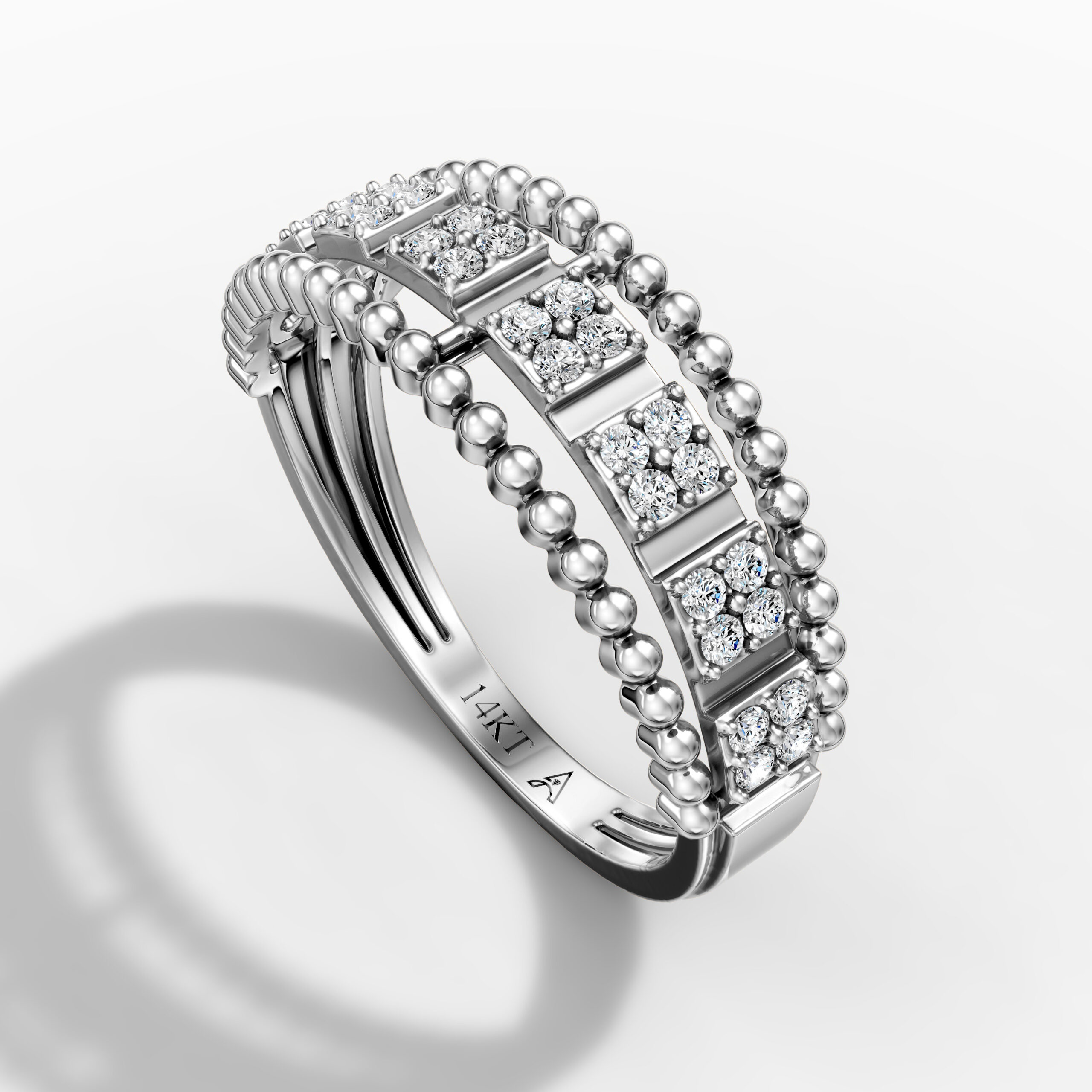 A contemporary take on timeless elegance. Crafted in 14K white gold, this Bujukan ring features delicate beaded gold rows framing panels of pavé-set round-cut natural diamonds. The design captures light with every movement, balancing modern geometry and classic brilliance.