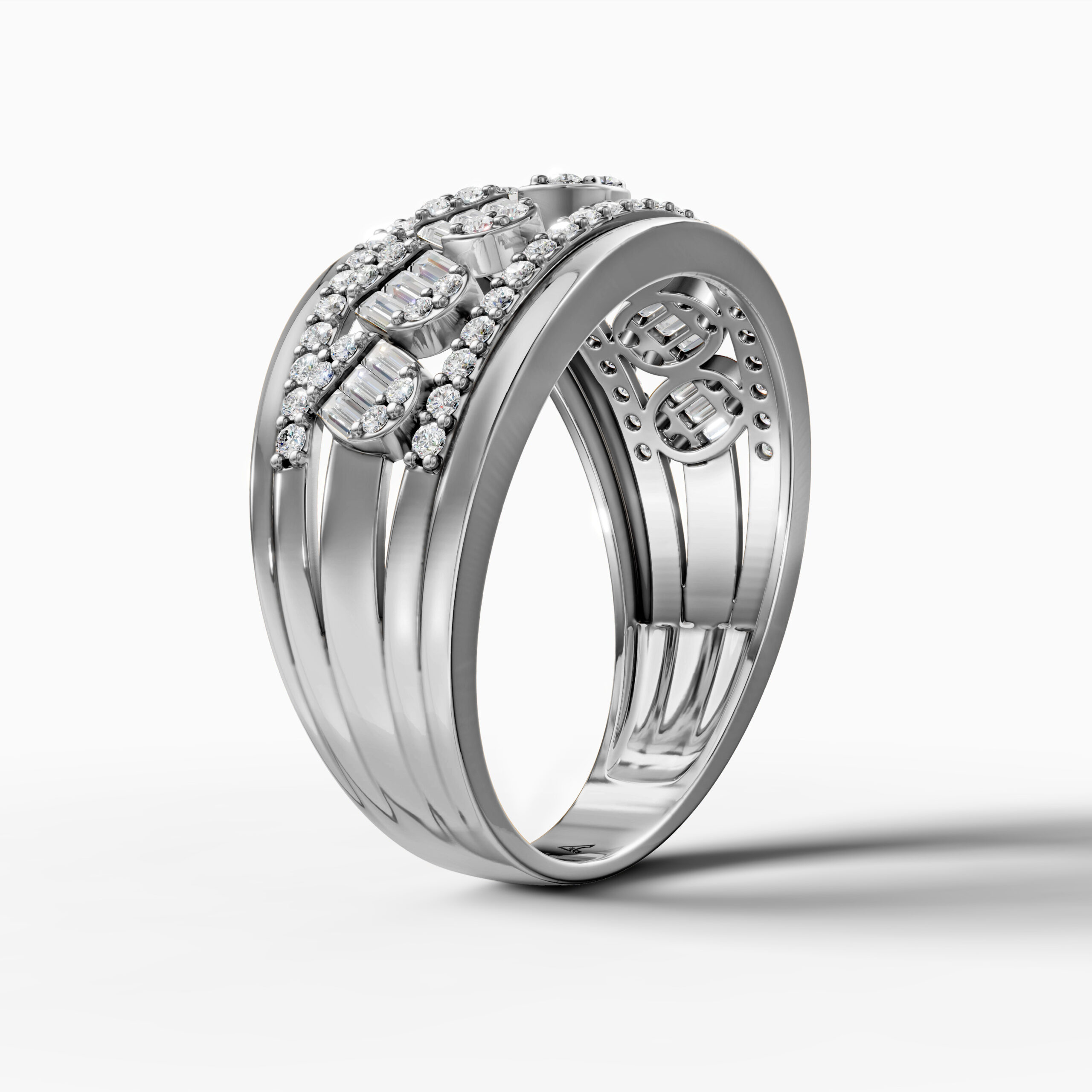 14K White Gold Natural Diamonds Baguette and Round-Cut Statement Ring