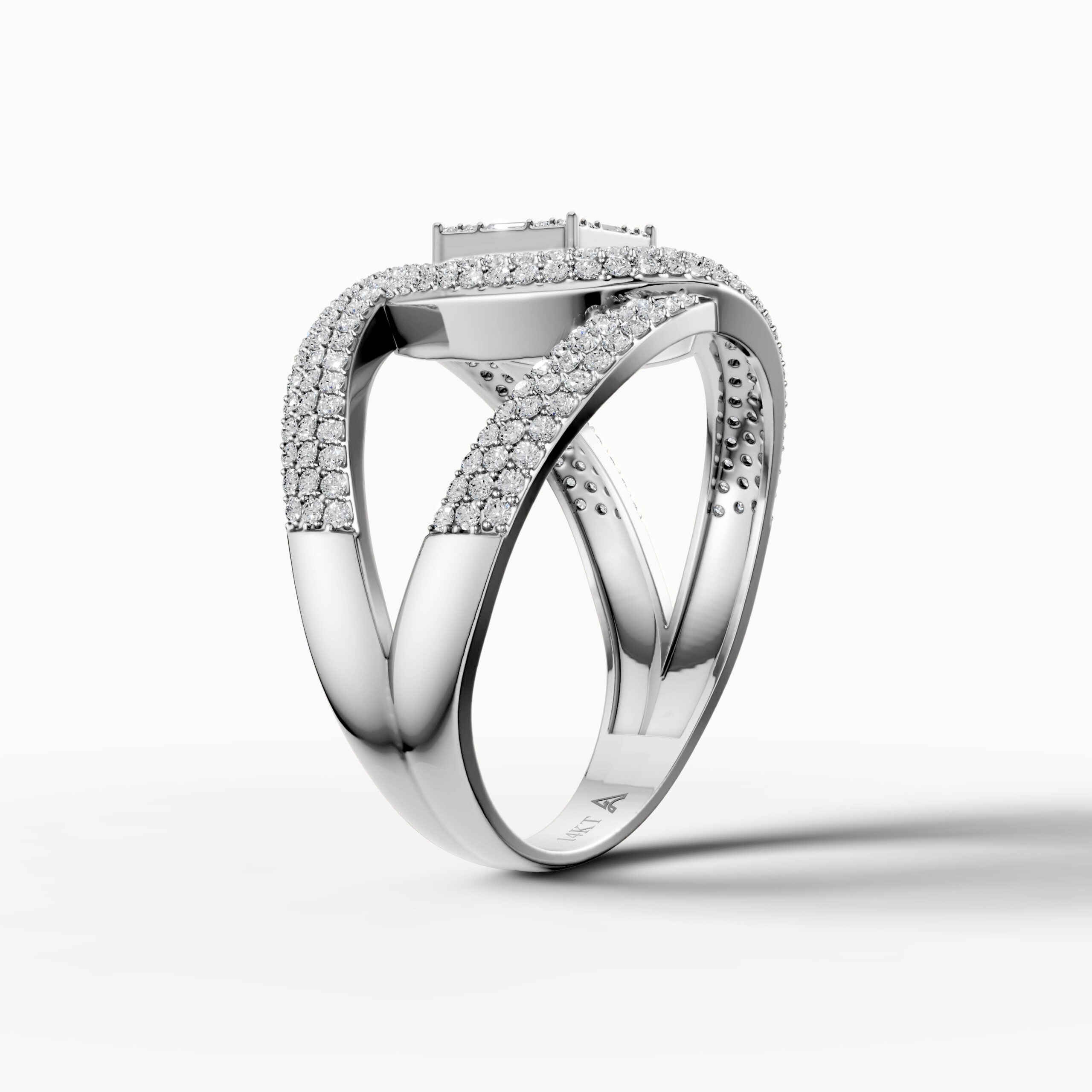 14K White Gold Natural Diamonds Geometric Pavé Statement Ring