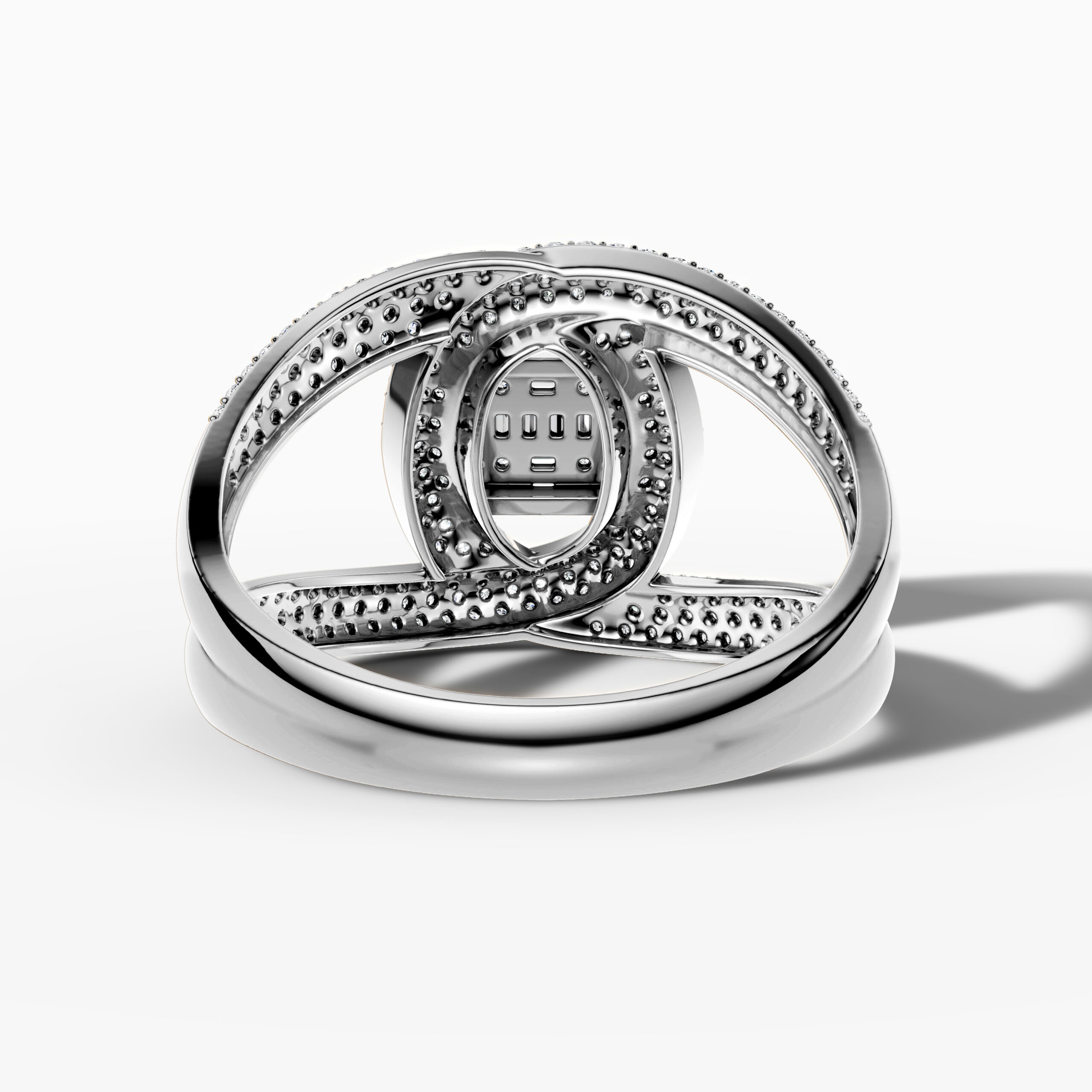 The open double-band design adds a modern edge, making this ring a showstopping balance of symmetry and sparkle.