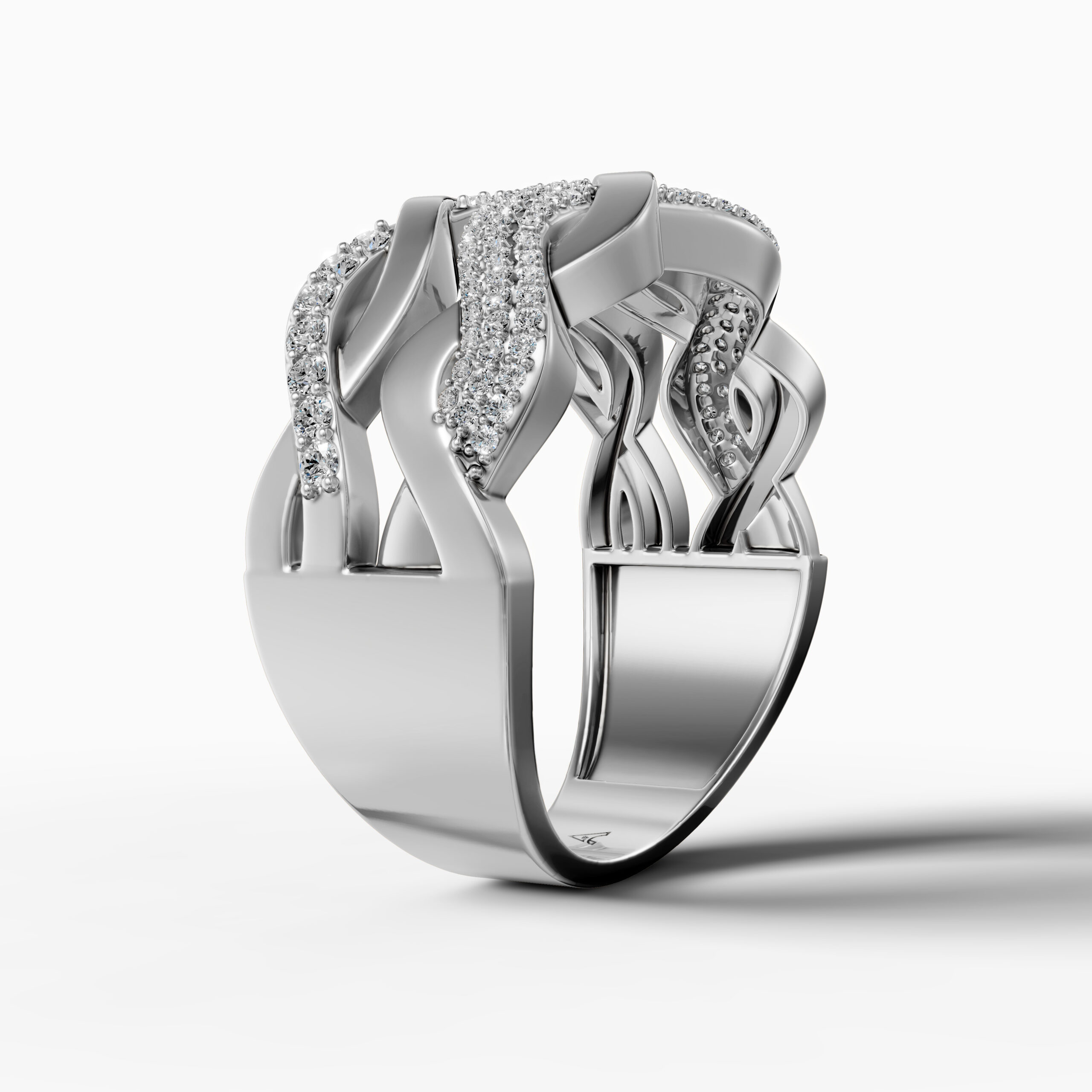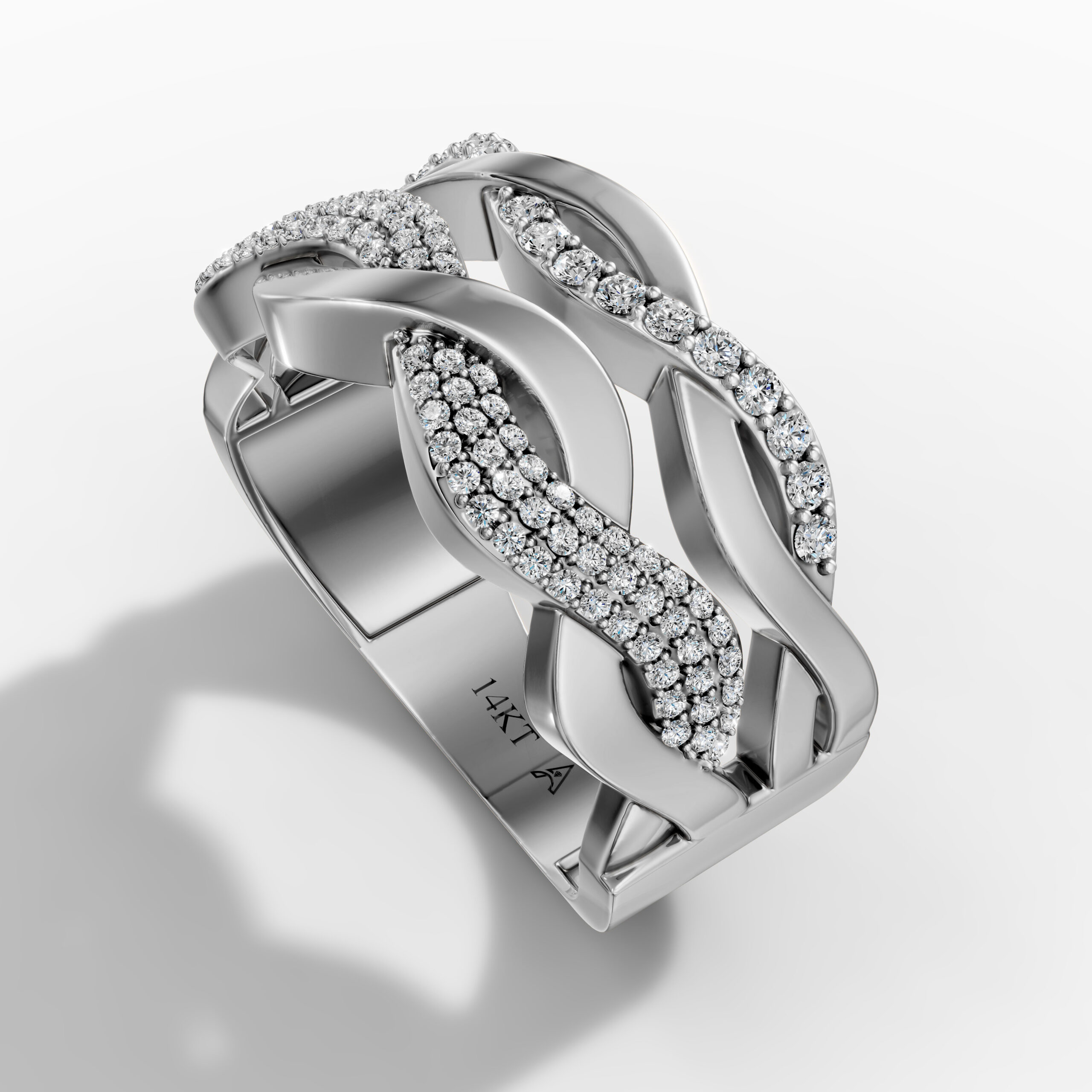 14K White Gold Natural Diamonds Intertwined Wave Ring