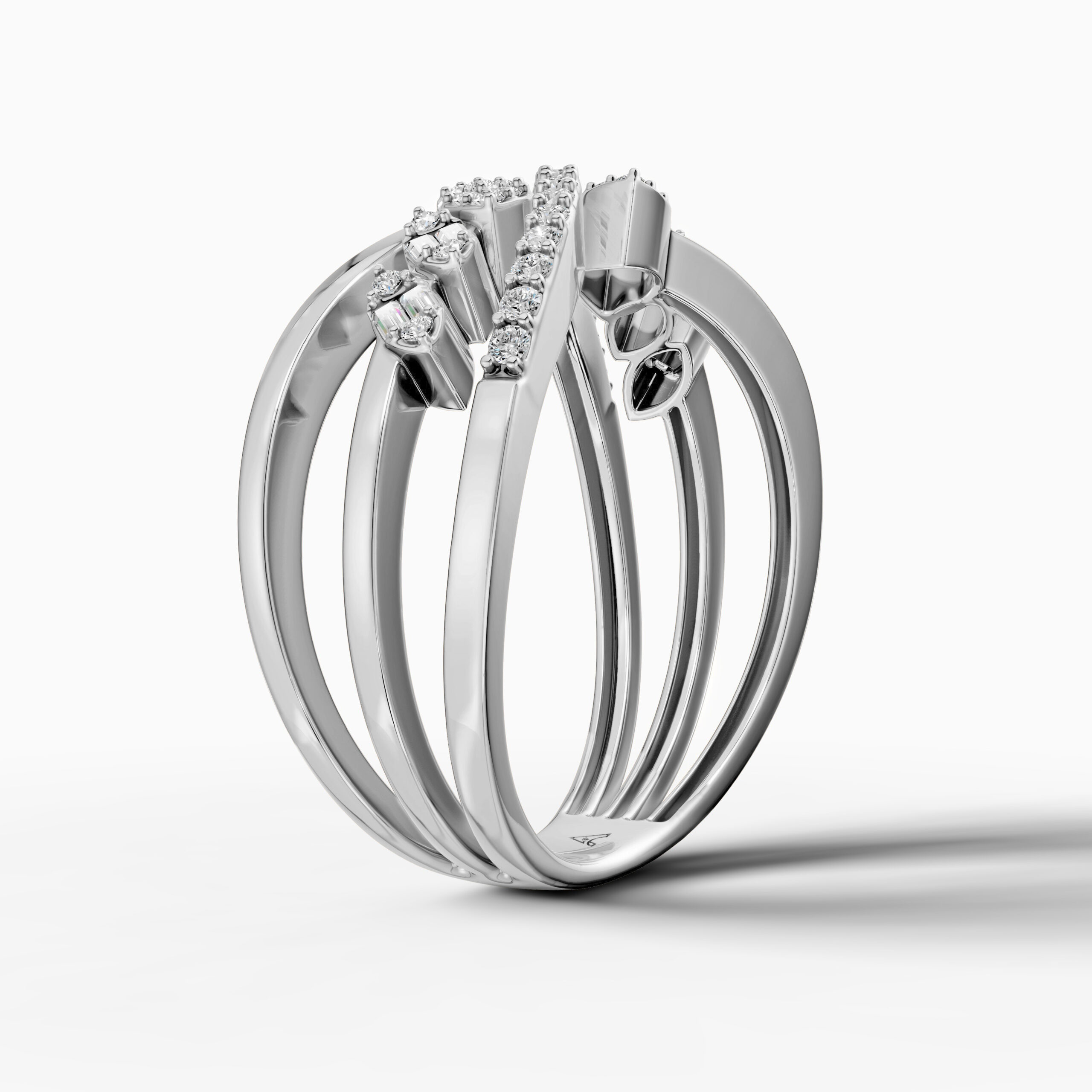 14K White Gold Natural Diamonds Twisted Leaf Baguette Ring