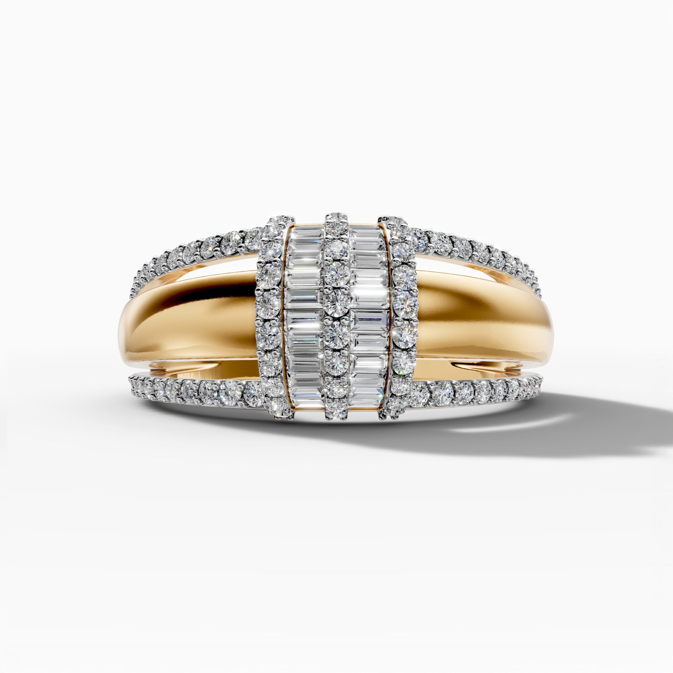 14K Yellow Gold Baguette & Round-Cut Natural Diamonds Bold Statement Ring