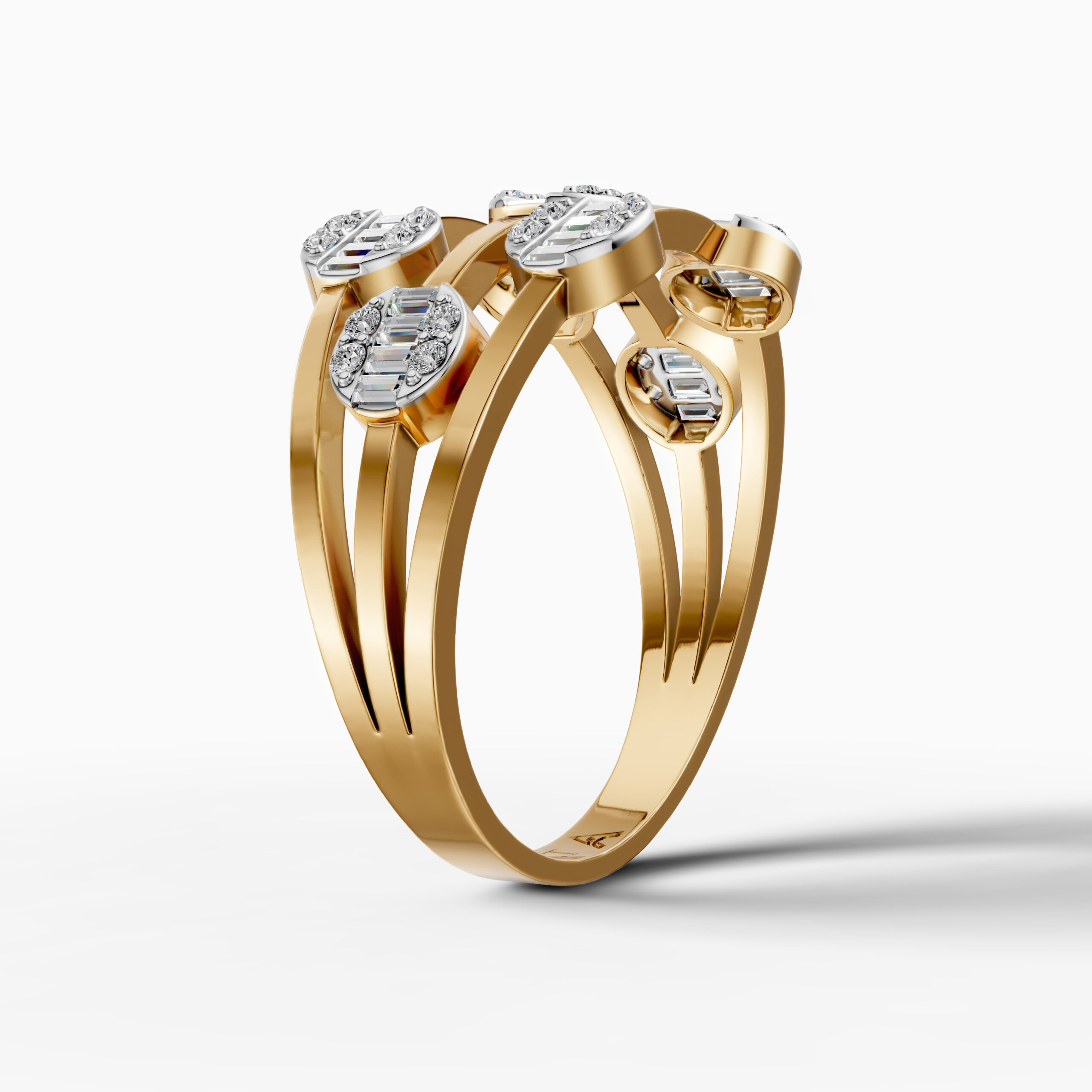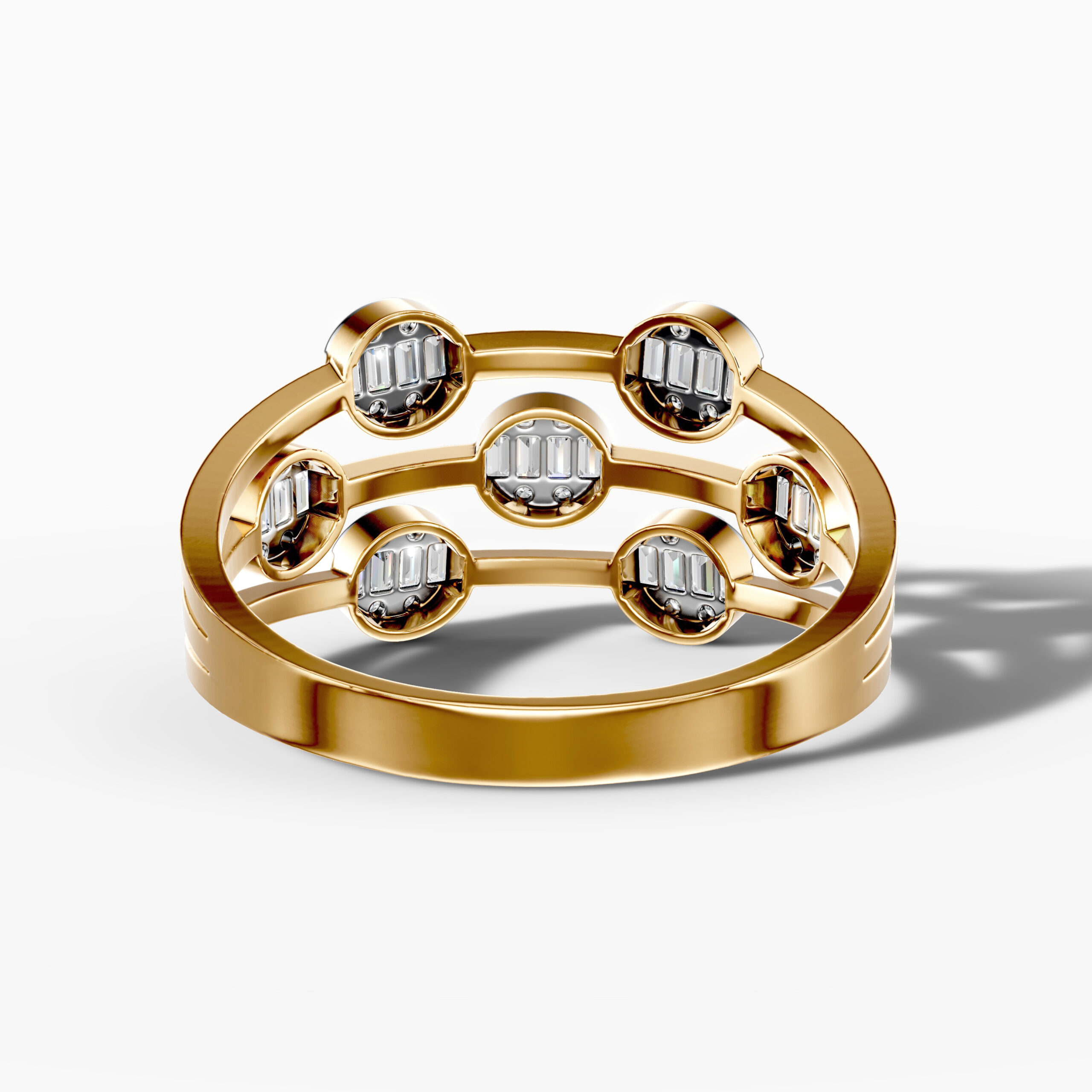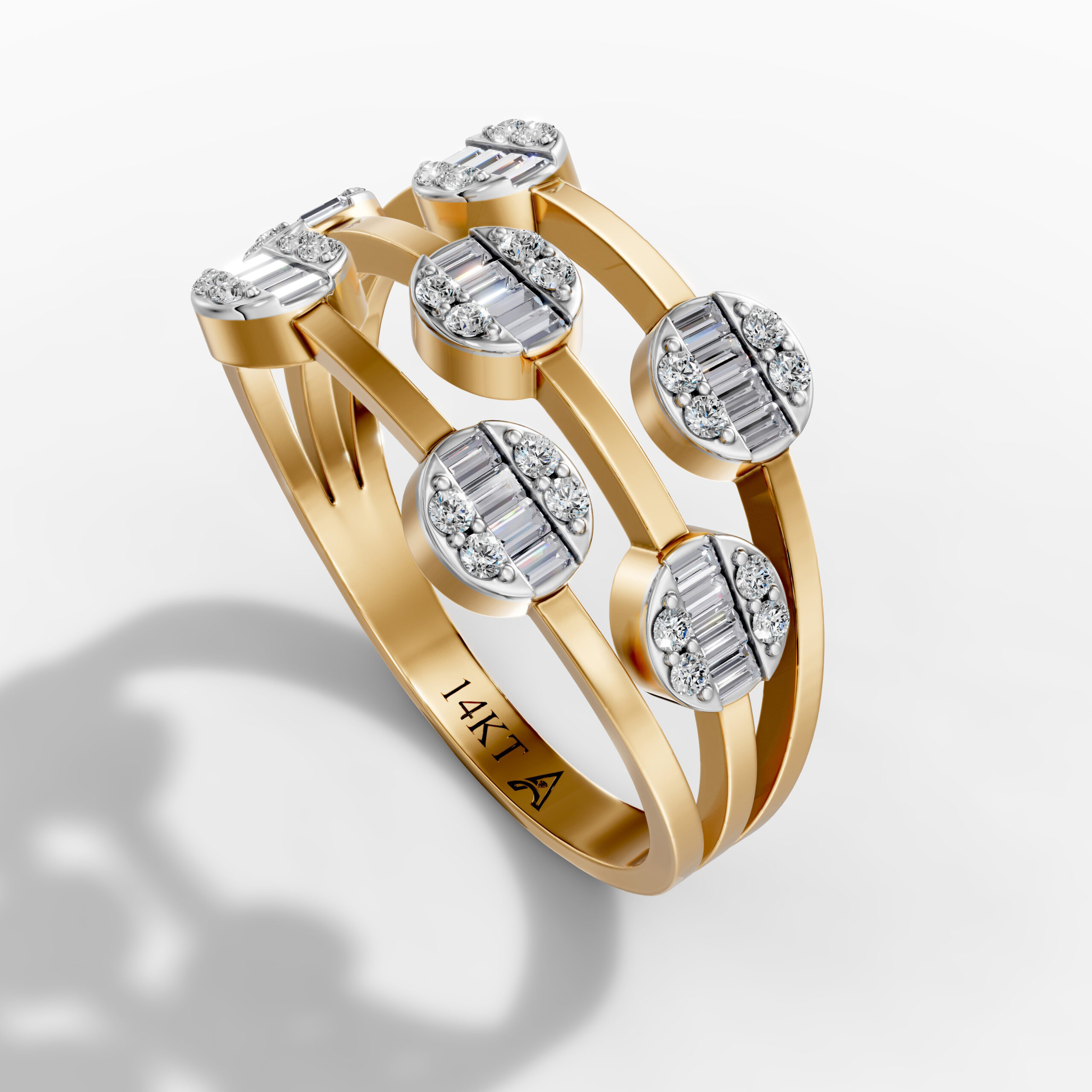 14K Yellow Gold Baguette & Round Natural Diamonds Multi-Row Circle Ring
