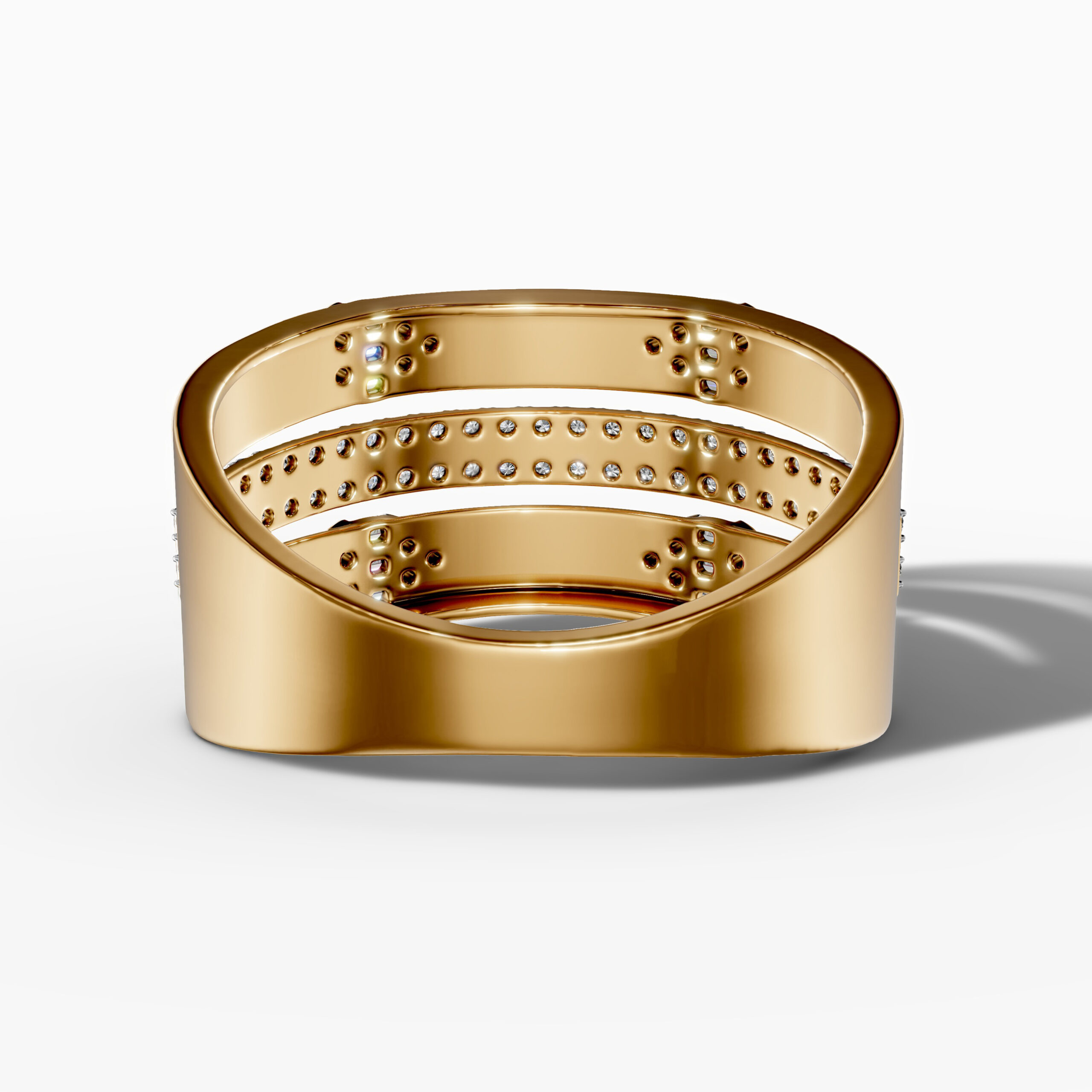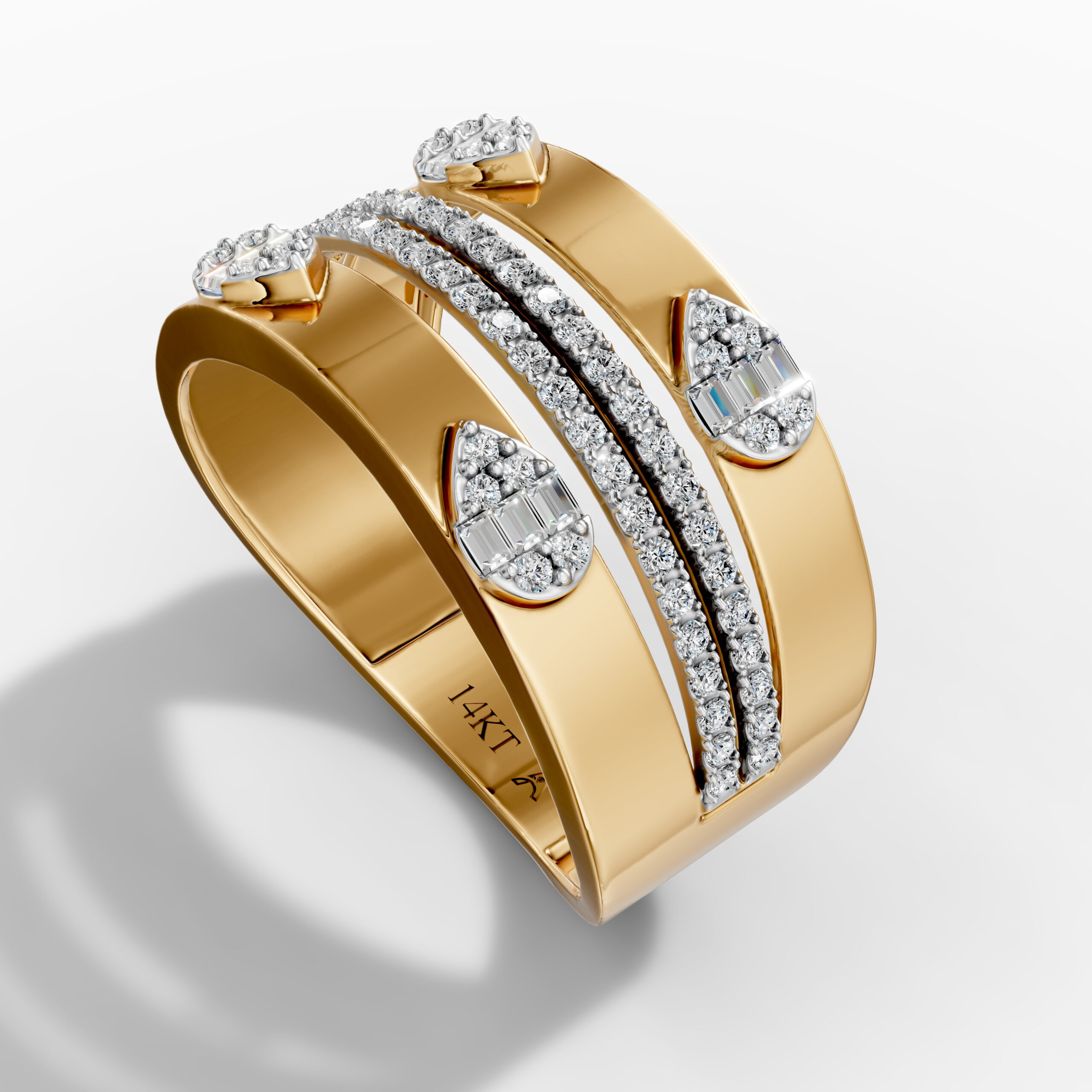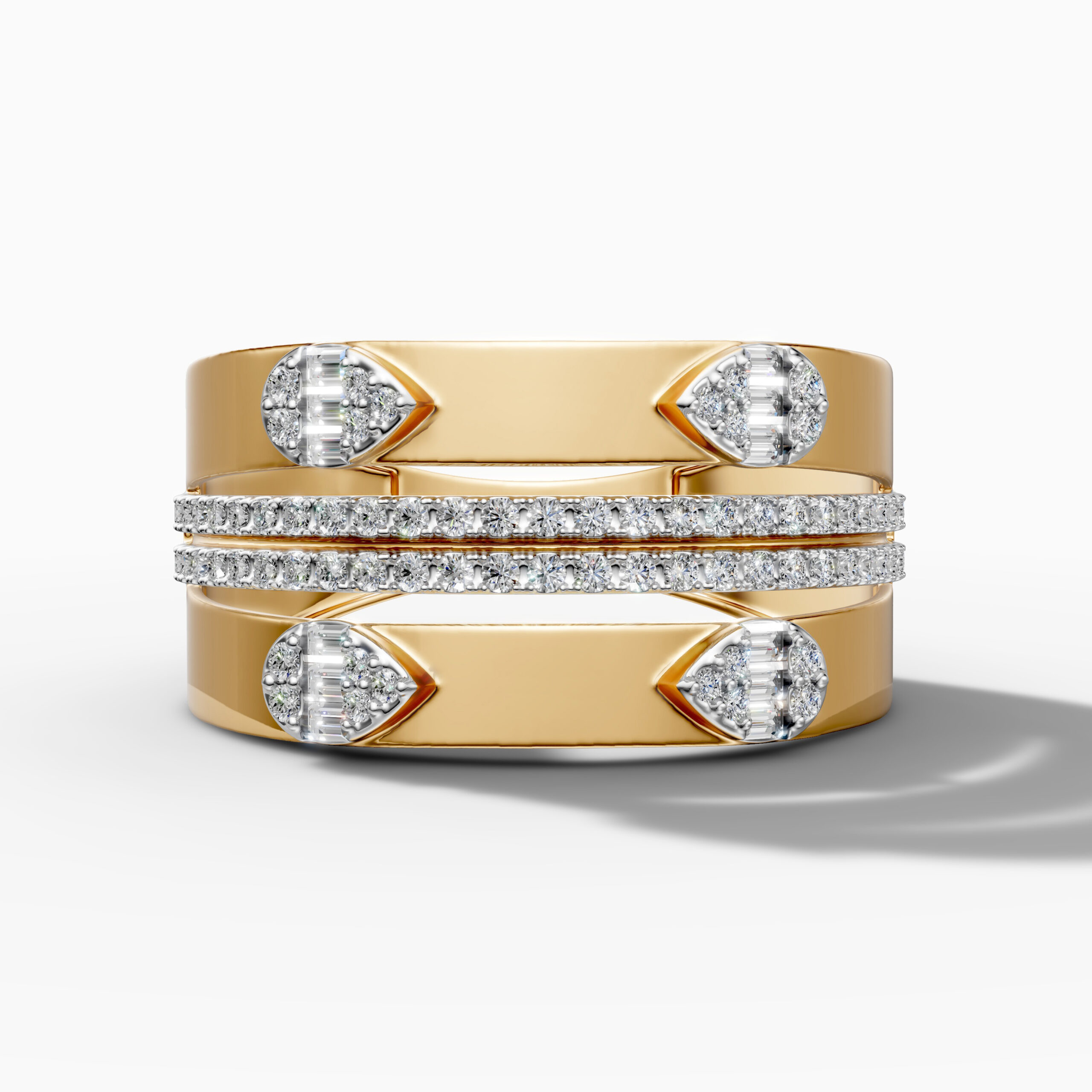 14K Yellow Gold Natural Diamonds Baguette and Pavé Modern Statement Ring