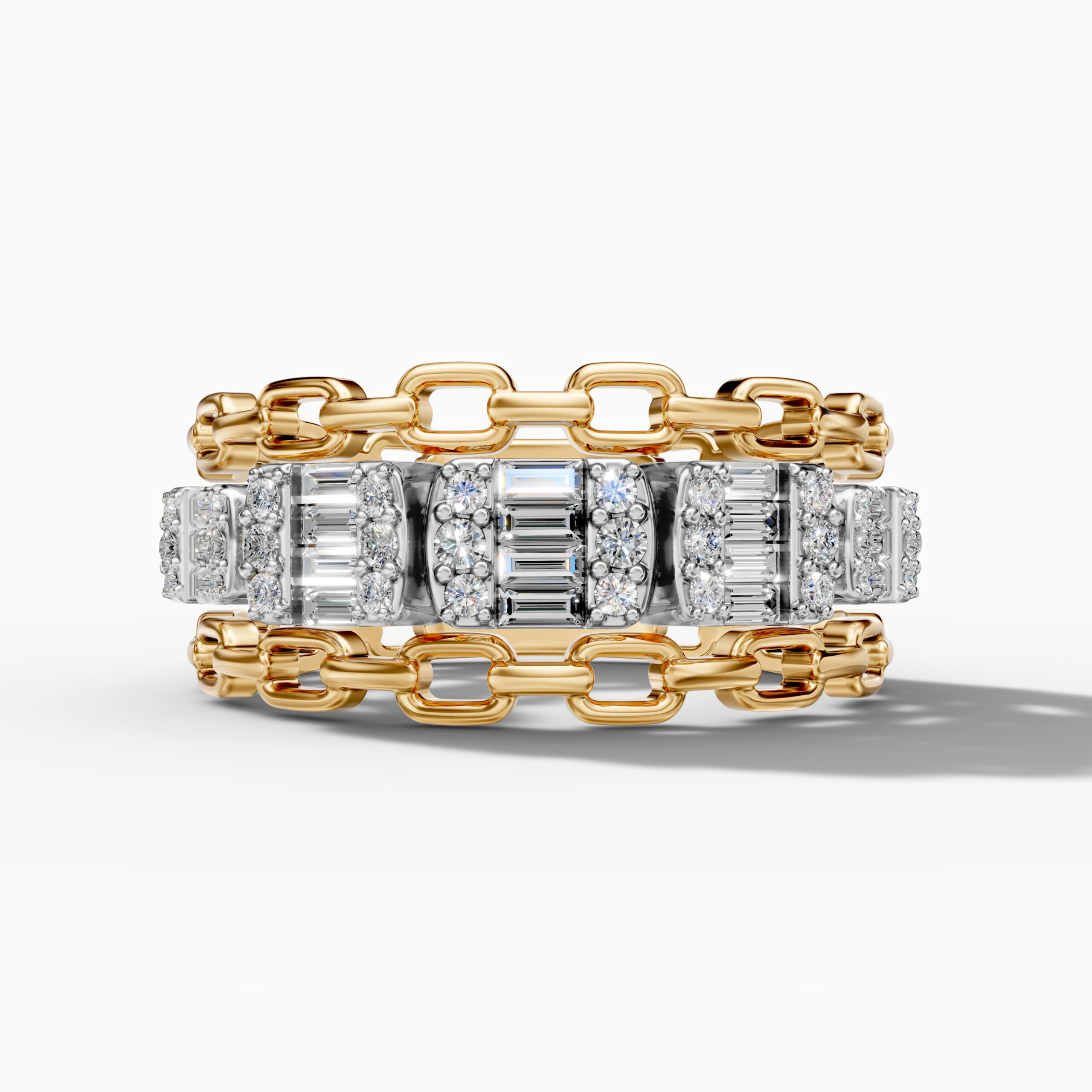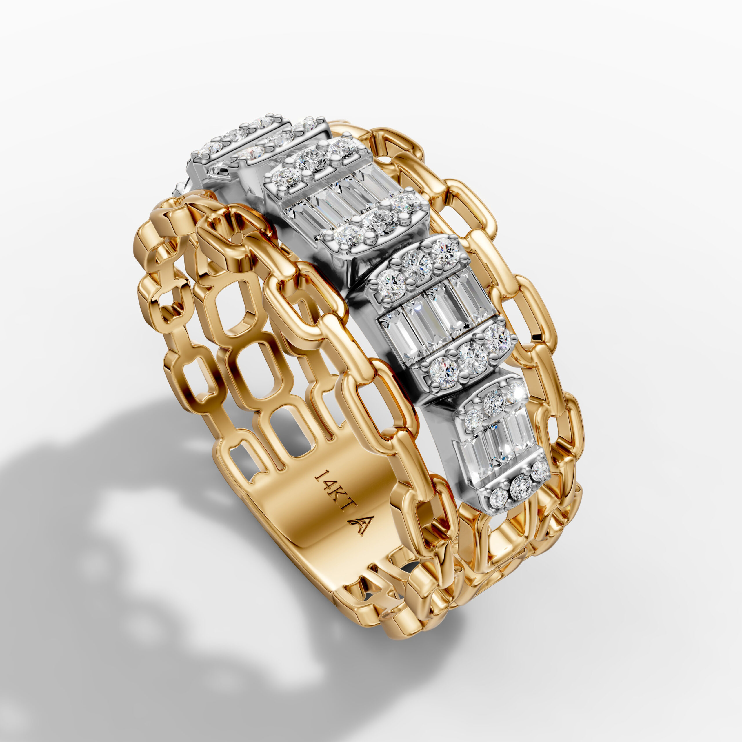 14K Yellow Gold Natural Diamonds Chain-Link Baguette Statement Ring