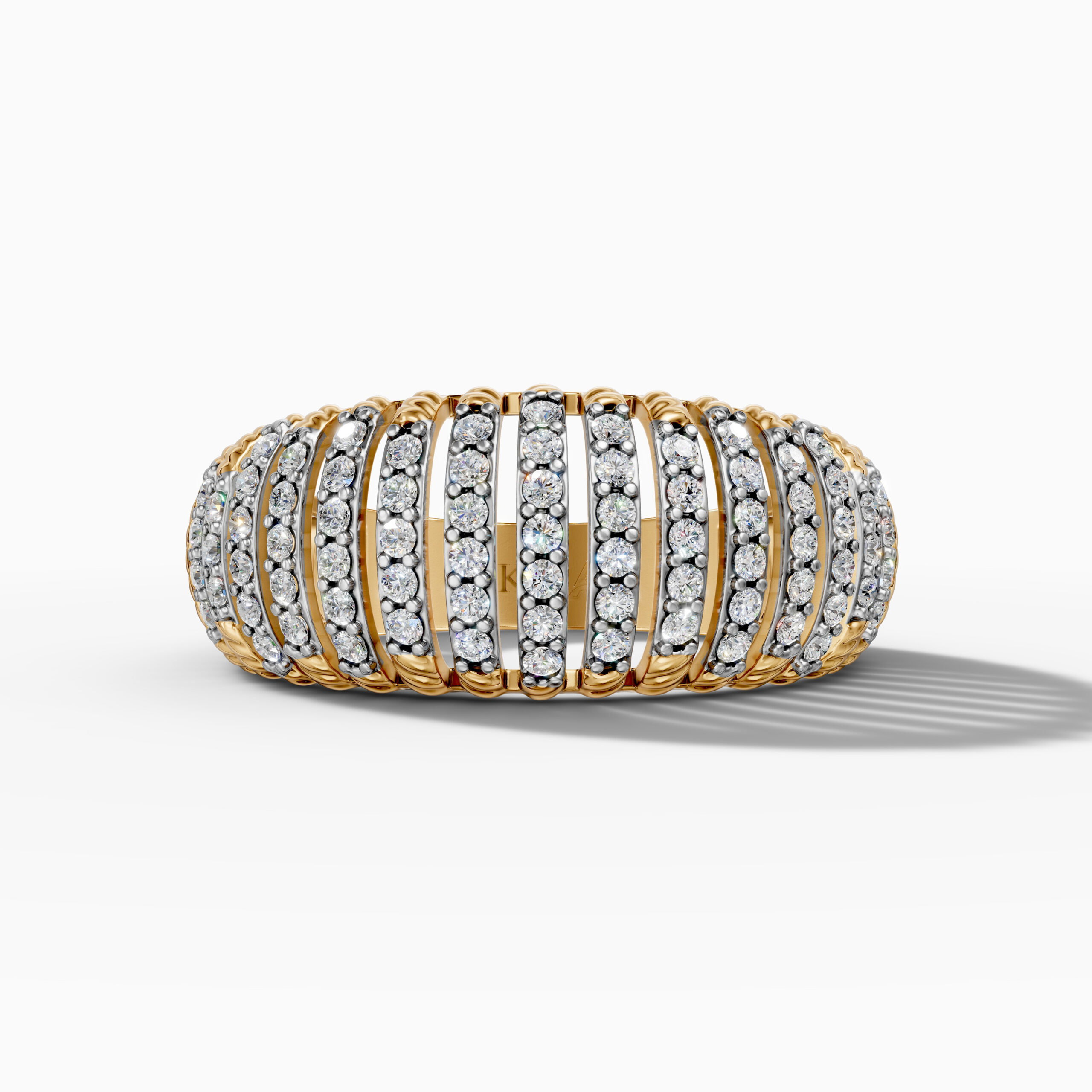 This 14K yellow gold ring from Aminov Jewelry exudes bold refinement through its sculptural ribbed design and pavé-set natural diamonds. Each curved row catches the light from every angle, creating a mesmerizing dome effect that blends texture with brilliance.